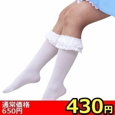 【430円★数量限定】リボン付きレースハイソックス 白<お一人様1点限り> 白