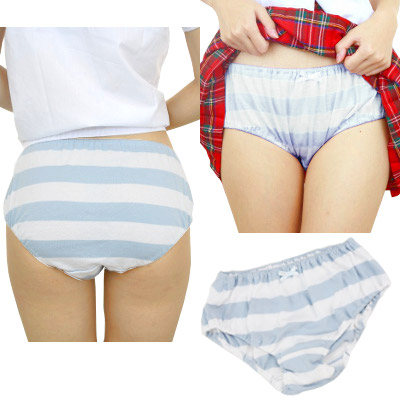 やっぱり可愛いしましまパンツ!サックス×ホワイトのしまパンに、深型タイプが登場。